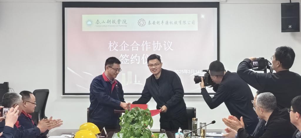 随后,太阳成集团122ccvip与山东省泰安利丰源机械有限公司举行了校企合作签约仪式。双方代表在签约仪式上郑重签字,标志着双方正式建立长期稳定的合作关系,共同开启校企合作新篇章。