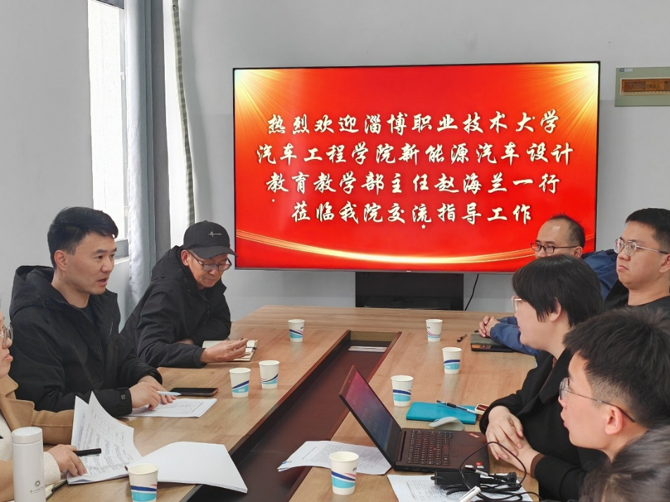 3月28日,淄博职业技术大学汽车工程公司新能源汽车设计公司产品部主任赵海兰一行来公司交流指导,车辆工程教研室全体成员参加。