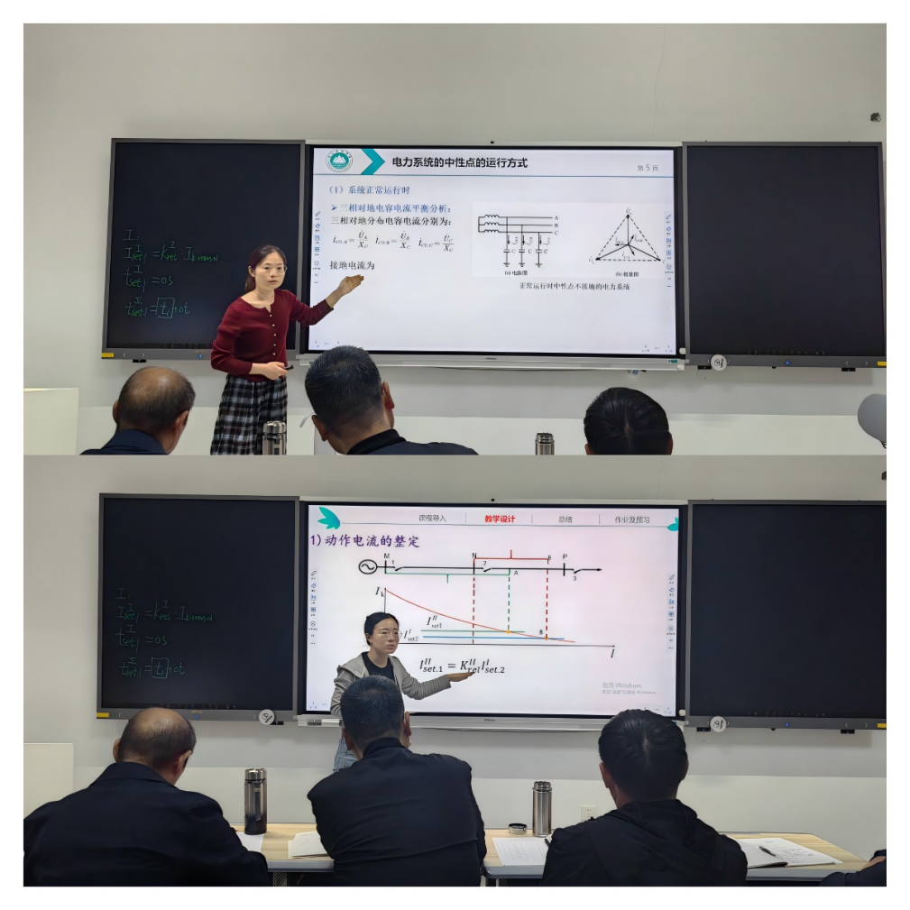 吴梅花老师和刘红翠老师合理运用多媒体辅助教学手段,以动图形式分步解析了限时电流速断保护整定原则和中性点不同接地方式故障电压和电流相量的前后变化。