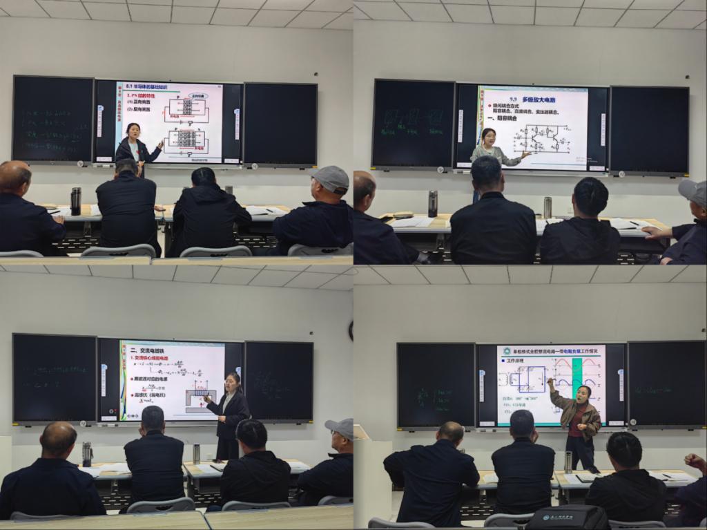 朱志源老师对动态电路方程的例题详解,亓冠华老师利用电动机的等效模型和等效电路对直流电动机的工作特性的分析,王文老师利用线性函数特性对直流电动机的稳态特性的分析,课程中老师们充分利用图文讲解对比函数分析的板书,让大家对经典电路和电机理论的认识不再乏味。