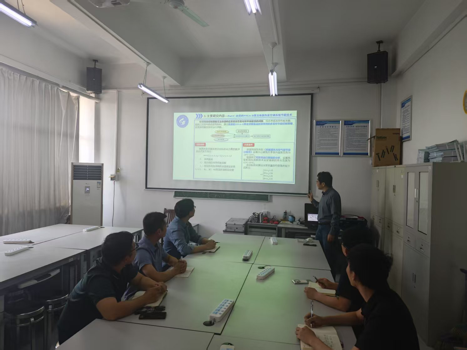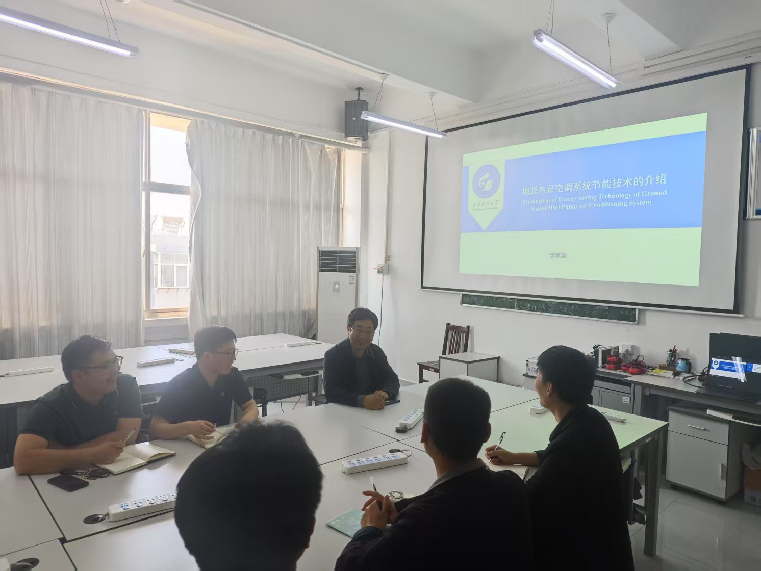 为了进一步给青年教师提供前沿技术融入课堂教学的思路,增强课程内容的实践性与创新性,激发青年教师开展科研项目的兴趣。4月25日上午10点半,山东科技大学教学名师、太阳成集团122ccvip青年教师成长导师李英建教授在科大2号实验楼为太阳成集团122ccvip王明伟、孟珩、杨晓楠等5位青年教师开展了“地源热泵空调系统节能技术”相关内容的讲解,大家针对该系统的研究与设计做了讨论,同时李老师对青年教师们提出的问题做了解答。