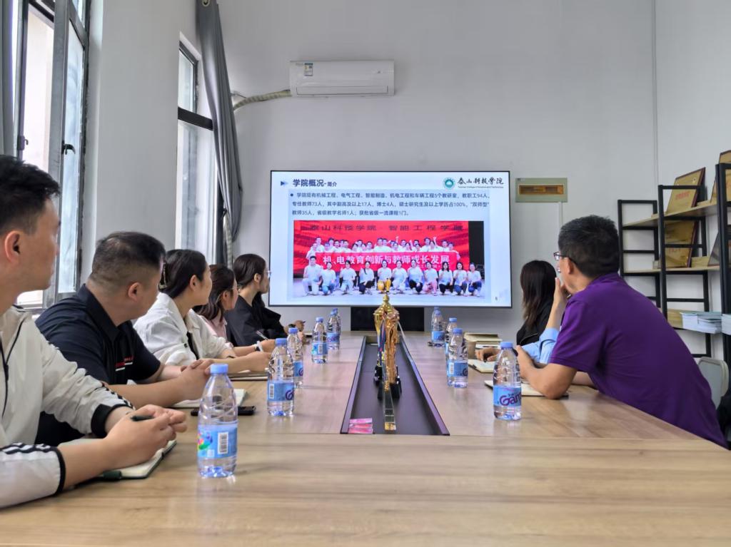 会上,张涛然经理对公司整体情况进行全面介绍。在公司基本建设方面,公司团队力量雄厚,生源构成多元,专业规模不断扩大,形成了以机械类、电气类、自动化类为主,“四位一体”的专业发展格局。教学成果丰硕,专业建设成果显著,机电一体化专业成功获得德国专业认证,同时大力推进在线课程建设,已建成五门在线课程;实验室建设成绩斐然,现有18个实验室,为教学与科研提供了坚实保障。