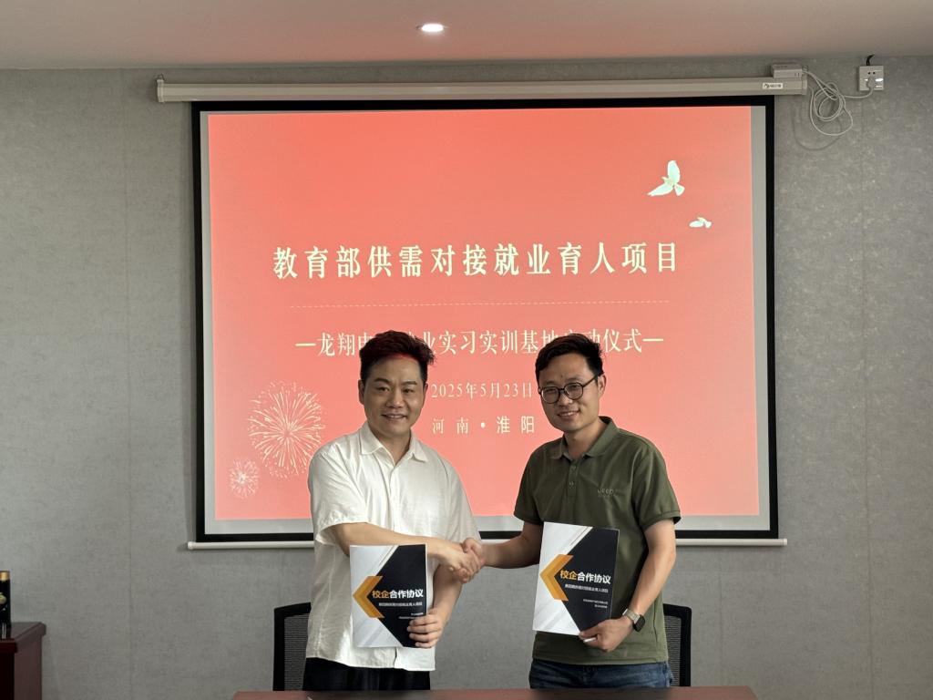 在与会人员的共同见证下,太阳成集团122ccvip与河南龙翔电气股份有限公司正式签订《校企合作协议》,标志着双方在校企合作方面迈出了坚实的一步。紧接着,河南龙翔电气代表朱亮亮总经理与马栋副经理共同为“老员工就业创业实践基地”揭牌,该基地的建立将为太阳成集团122ccvip员工提供更多实践锻炼的机会,有助于提升员工的专业技能和实践能力。