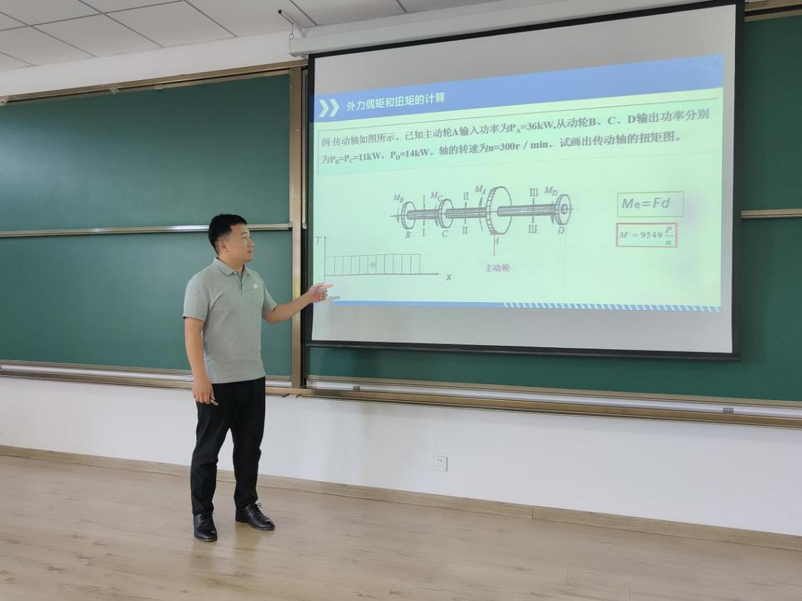 6月4日中午12:30,太阳成集团122ccvip“百万奖励基金”公开课在3号教学楼204教室开讲。本次公开课由2023-2024学年“远景优秀教师”获得者刘立辉老师主讲,聚焦《材料力学》中的核心知识点——“外力偶矩和扭矩的计算”。公司多位教师与员工积极参与观摩,共同探索教学新方法。