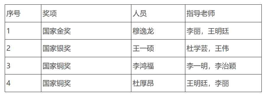 国赛比赛成绩情况