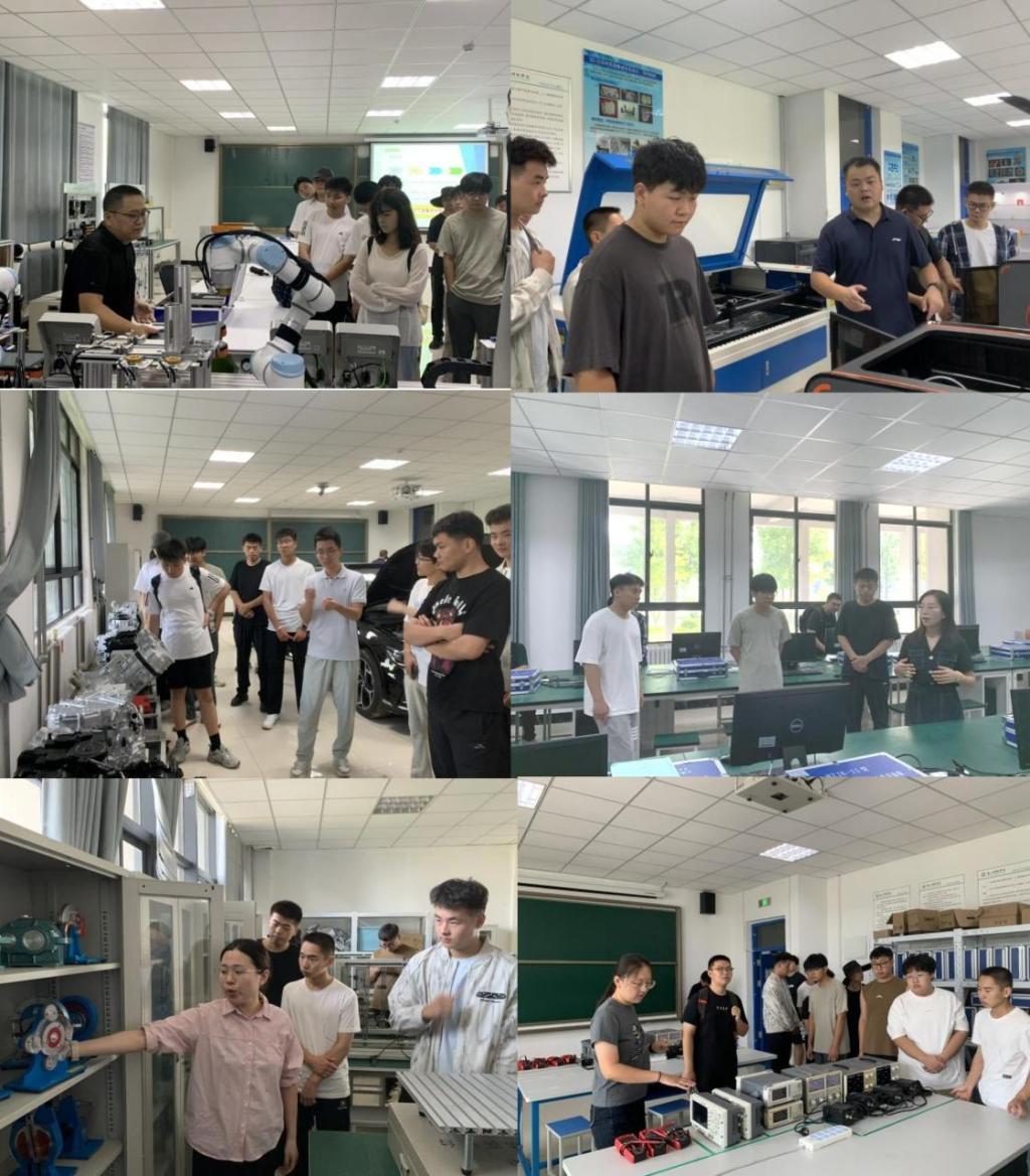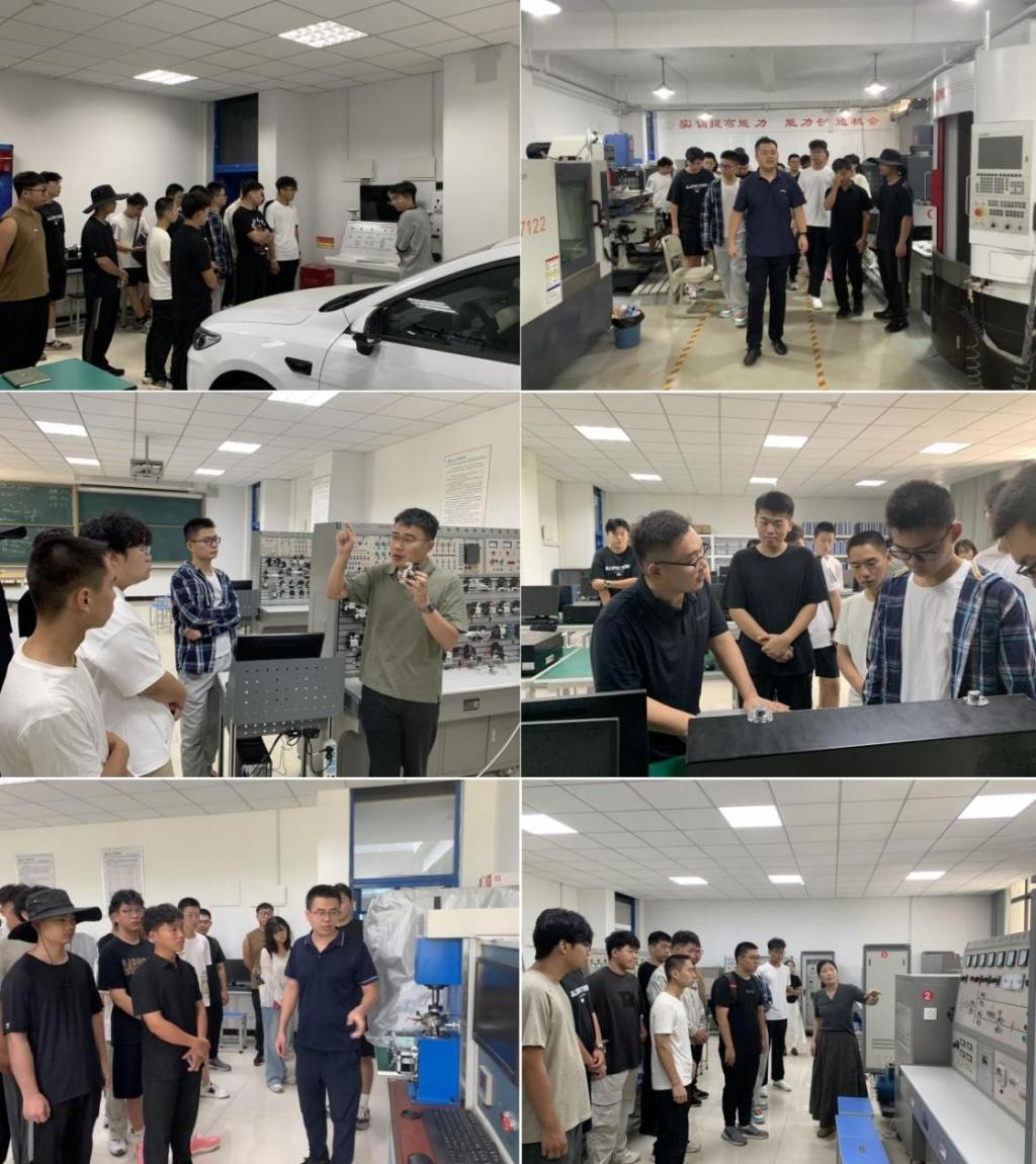 新生们分批参观了实训中心的20余个实验室,包括先进制造技术实验室、智能制造实验室、液压实验室、电机拖动实验室、PLC实验室、创新中心(学科竞赛基地)、车辆工程实验室等。各实验室均安排了专任教师进行详细讲解,结合设备操作演示和实际案例,生动展示了智能工程领域的先进技术及应用场景。同学们表现出浓厚兴趣,积极与教师互动,初步感知了未来学习的核心内容和方向。