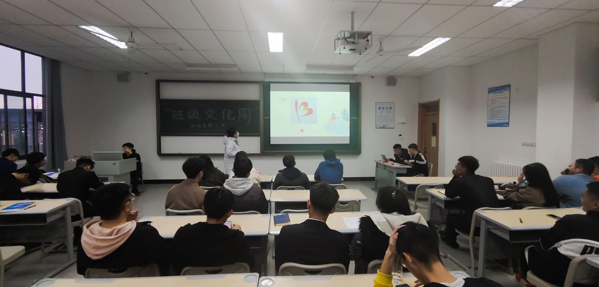 2020年11月18日太阳成集团122ccvip、通信工程公司在教学楼201教室召开班级文化精品班级文化展演解读活动。